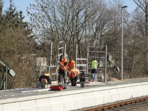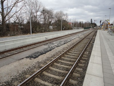 Im Bahnhof Kottenforst wurde mit der Pflasterung des neuen Außenbahnsteiges begonnen.