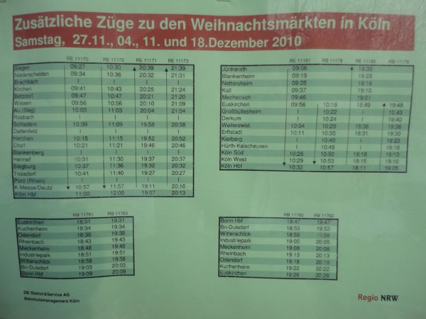 Unter der Überschrift "Barrierefreiheit: Weihnachtsfeier mit Hindernissen" findet sich in der heutigen Ausgabe der "Kölnischen Rundschau" ein Bericht zu den Erlebnissen einer Rollstuhlfahrerin, die von Euskirchen nach Köln- Deutz fahren wollte - siehe dazu Bitte auch hier: