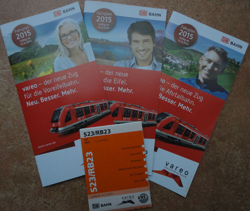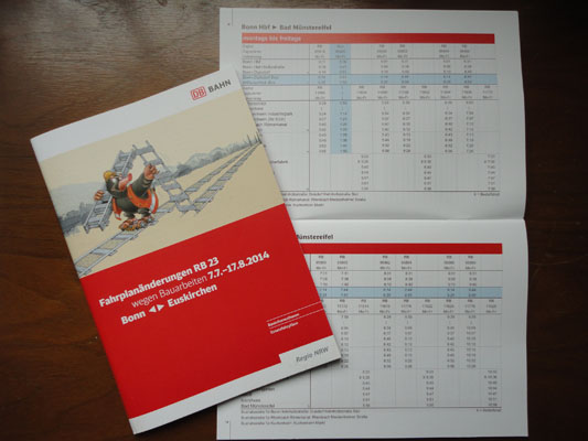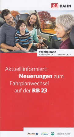 Im Reisezentrum des Bonner Hauptbahnhofes findet sich in den Prospektregalen seit heute eine neue Broschüre unter dem Titel "Aktuell informiert: Neuerungen zum Fahrplanwechsel auf der RB 23":