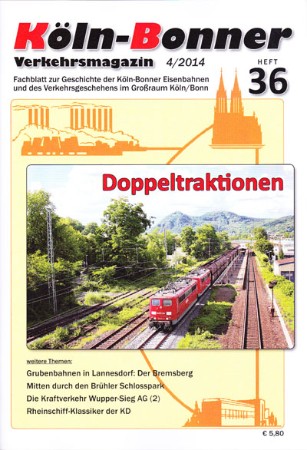 Wie gewöhnlich ist auch dieses Heft (1/ 2014 - Heft 33) wieder Randvoll mit den unterschiedlichsten Berichten zur Verkehrsgeschichte im Köln- Bonner Raum. Neben Artikeln über "Die Nord-Süd-Bahn" und "Zirkus- Sonderzüge im Köln-Bonner Raum" wird auch "Von Schranken und Schrankenposten" berichtet (hier gibt es auch ein Bild aus Duisdorf). Außerdem geht es im Heft noch um "Gelbe Spezialitäten" und "Schlimme Zeiten". Absolut Empfehlenswert!