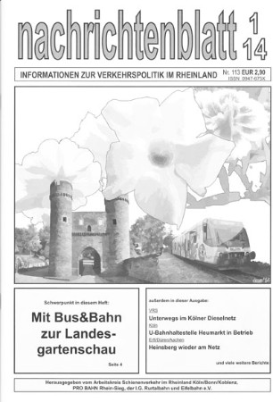 In der nun erhältlichen Ausgabe der Zeitschrift "nachrichtenblatt - Informationen zur Verkehrspolitik im Rheinland" (Ausgabe 4/14) finden sich zwei größere Artikel mit direktem bzw. indirektem Bezug zur Voreifelstrecke: zum einen unter der Überschrift "Projekt Voreifelbahn vor dem erfolgreichen Abschluß?" eine Doppelseite, zum anderen unter der Überschrift "Bonner Staatsbahnhöfe ein größerer Artikel über die diversen Bonner Bahnhöfe. Vor allem auch der erstgenannte Artikel ist, mit seiner Analyse der derzeitigen Situation, äußerst interessant!