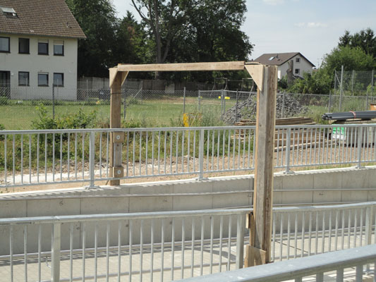 Auch am Haltepunkt "Rheinbach Römerkanal" werden an der Rampe auf der Seite von Gleis 2 die Metallgeländer montiert.