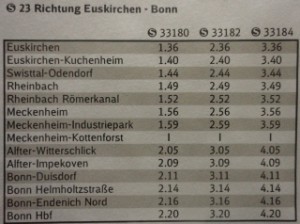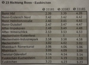 "Entspanntes Umsteigen am Bonner Bahnhof" ist ein Bericht in der heutigen Ausgabe der "Bonner Rundschau" überschrieben, in dem es um die diversen Änderungen zum anstehenden Fahrplanwechsel am 13. Dezember unter anderem auf der S23 geht - siehe dazu Bitte auch hier: