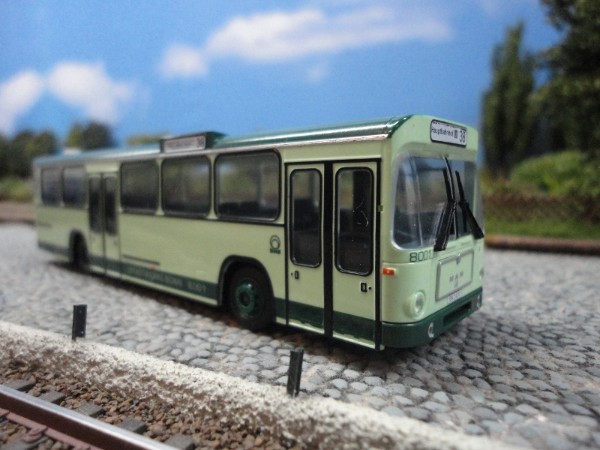Die Firma Rietze hat mit ihren Dezember-Neuheiten nun auch den schon seit einiger Zeit angekündigten MAN SL200 der "Stadtwerke Bonn" (Wg. "8202") in der schönen alten, grünen Lackierung (und mit "Vergölst"- Reklame) ausgeliefert: