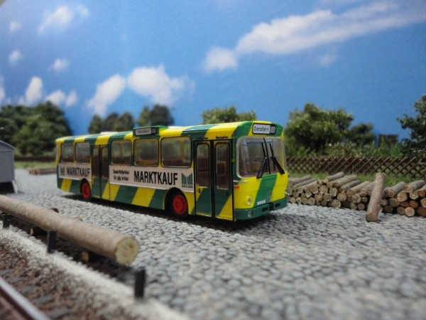 Und noch ein neues Busmodell: die Firma Rietze lieferte mit den Dezember- Neuheiten unter der Art.Nr.: 74302 nun auch noch den Mercedes O305 der "RVK" mit der "Marktkauf"- Reklame aus: