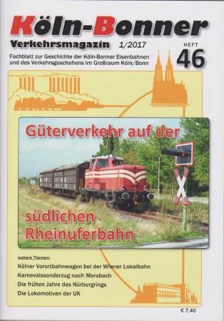 Vom "Güterverkehr auf der südlichen Rheinuferbahn" über "Die frühen Jahre des Nürburgrings" und "Das Schranken-Biotop" geht es dieses Mal "Auf zur Demo" - neben jeder Menge weiterer Beiträge der bewährten Autoren. Für den an regionaler Verkehrsgeschichte Interessierten wieder unverzichtbar! Beigelegt ist auch wieder eine Terminübersicht (Februar - Mai 2017). Erhältlich - wie gewohnt - in den Bahnhofsbuchhandlungen in Köln und Bonn, sowie u.a. den Bonner Modellbahnläden und direkt über den Verlag: http://koeln-bonner.de/