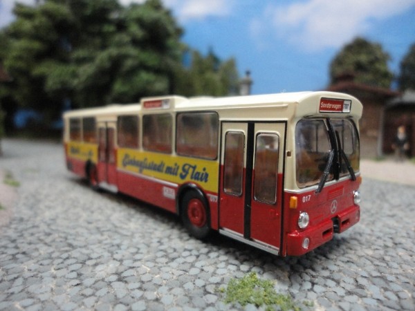 Und erneut kündigt die Firma Brekina ein - für den regionalen Köln/ Bonner Nahverkehr im Maßstab 1:87 - brauchbares Modell an. Unter der Art.-Nr.: 50760 wird an weiterer Mercedes O305 der "KBE" angeboten, versehen mit Werbung für die "Einkaufsstadt Brühl". Das Fahrzeug trägt die Wagennummer 017 und ist auf der Linie 707 als "Sonderwagen" unterwegs. Das Modell soll 35,90 € kosten - siehe dazu Bitte auch hier: