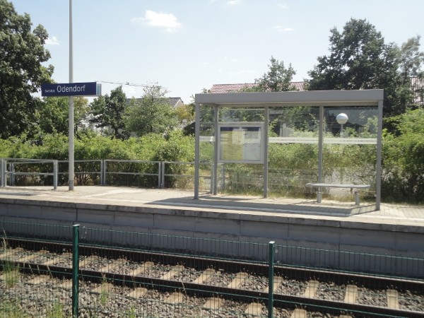 In den letzten Tagen wurde das ehemalige Odendorfer Empfangsgebäude weitgehend neu gestrichen (wobei auch die Schriftzüge des Pizzaservice und das großflächige Graffitti an der Stirnwand verschwanden), so daß es sich jetzt beinahe wieder im altbekannten Aussehen zeigt.