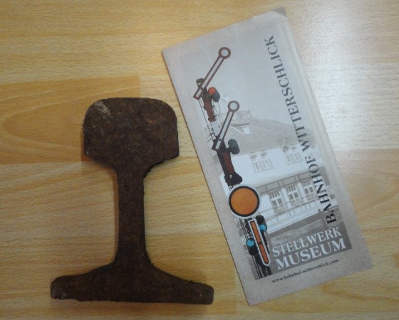 Die Schienen-Scheibe fand ich auf dem Boden der dorfseitigen Rampe zur Fußgängerunterführung im Bahnhof Odendorf und das Faltblatt anschließend im Zug auf der Fahrt nach Bonn Hauptbahnhof. ;-)