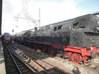 Dampflokomotiven: Baureihe 38/ 038 (preußsche P 8): Die Lokomotiven der Baureihe 38/ 038 (pr. P 8) dürften relativ bald nach dem Aufkommen der Baureihe von der preußischen Staatsbahn auf der Strecke eingesetzt worden sein. Im Einsatz blieben sie hier bis etwa Mitte der 60er Jahre, zusammen mit den Lokomotiven der Baureihe 78/ 078 (pr. T 18).  | Die preuß. P8 "2455 Posen" des Heilbronner Eisenbahnmuseums mit dem "Zug der Erinnerung"
