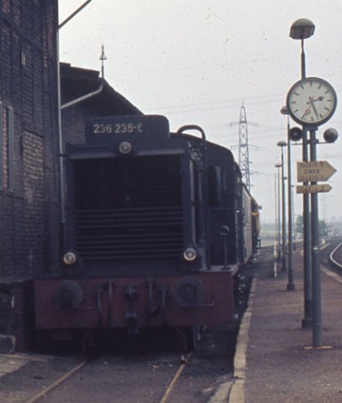 Baureihe V36/ 236: Auch Lokomotiven dieser Baureihe konnte man schon auf der Strecke Bonn- Euskirchen sehen: so z. B. unter anderem vor einem Sonder- oder Arbeitszug (ca. 1976 - siehe unten) und einem Sonderzug am 11. April 1985 (V36 231).  | Im Bahnhof Meckenheim - im Jahr 1976.