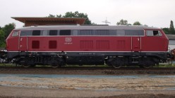 | 16.400 mm | Drehgestellmittenabstand | 8.600 mm | Drehgestellachsstand | 2.800 mm | Gesamtradstand | 11.400 mm | Gewicht | 79,0 t | Radsatzfahrmasse | 20,0 t | Höchstgeschwindigkeit | 140 km/h (ab 215 005) | Leistung | 1397 kw (215 011- 070 und 215 091- 150) 1840 kw (215 001- 010 und 215 071- 090) | Drehzahl | 1500 min | Leistungsübertragung | hydraulisch | Tankinhalt | 3.050 l (Kraftstoff) 2.850 l (Wasser) 690 l (Heizöl) 320 kg (Sand) | Heizung | Dampf | Hersteller | Krupp, Henschel, Krauss-Maffei, MaK | Baujahr | 1968 - 1970 |