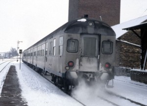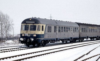 Bei den Steuerwagen gab es zwei unterschiedliche Kopfformen, beide waren auch auf der Strecke Bonn-Euskirchen unterwegs (hier aufgenommen im Bahnhof Rheinbach am 26.12.1986):