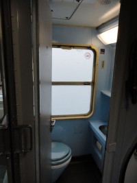Der erste 1./2. Klasse-Wagen hinter der Lokomotive ist übrigens durch an die Fenster geklebte Hinweiszettel als 2. Klasse- Wagen freigegeben worden.