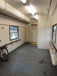 Blick ins Fahrrad- bzw. das ehemalige Gepäckabteil in Richtung Steuerabteil.