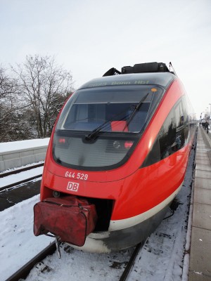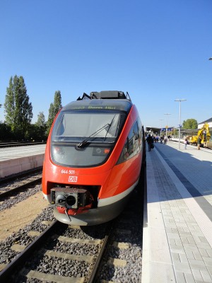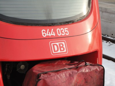 Seit August/ November sind inzwischen allerdings die Fahrzeuge 644 029, 035 und 058 auf der Strecke unterwegs und sind die bisher einzigen von mir gesichteten Fahrzeuge, bei denen die Nummer ordentlich neu in der Stirnseitenmitte - direkt über dem DB AG- Keks - angeordnet wurde.