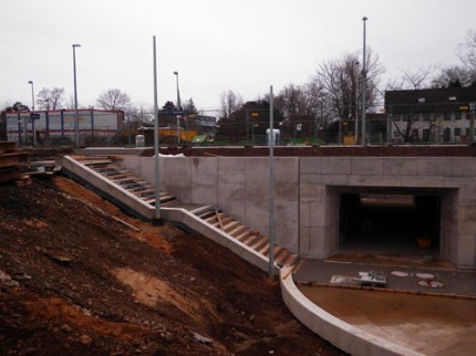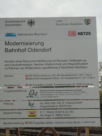 Unterführung Im November 2011 wurde am Bahnhof Odendorf mit dem Bau einer Fußgängerunterführung begonnen. Hier gibt es den Bau - nach monatlichen Baufortschritten - als kleine Bildergeschichte.
