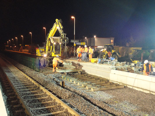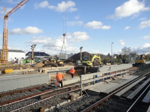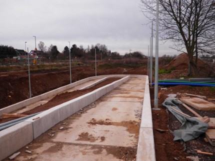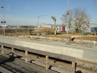 | | Der verlängerte Bahnsteig im Rohbau.