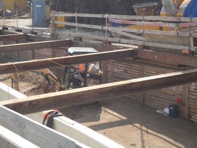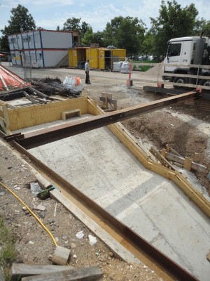 | | Stahlträger zur Baugrubenabstützung.