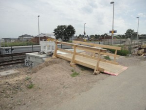 Juni 2013:  | |  | |  | Provisorische Rampe am verlängerten Bahnsteig.