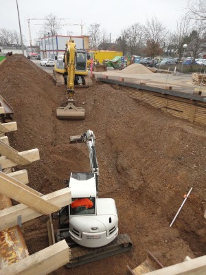 Mai 2013:  | |  | |  | | | | Die Baugrube für die Rampe . . .