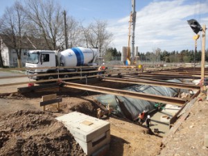|  | |  | |  | Die erste Lage des Bodens wird betoniert.