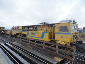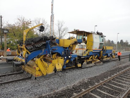 |  | |  | ca. 13.30 Uhr: das Gleis wird mit einer stopfmaschine überarbeitet.